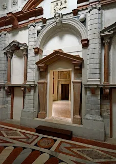 And on either side the portico runs across the facade, the marble rosso is faux, it was restored 30 years ago, after the paint had long vanished.